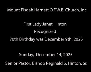 Photo Recap of First Lady Hinton’s 70th Birthday Celebration Post author:Kimberly Massey Post published:December 16, 2025 Post category:Uncategorized Post comments:0 Comments You Might Also Like Happy 70th Birthday Bishop Hinton! August 29, 2025 Annual Conference Survey November 19, 2023 Sunday School Recognition Photo Recap March 24, 2025 Leave a Reply Cancel replyCommentEnter your name or username to comment Enter your email address to comment Enter your website URL (optional) Save my name, email, and website in this browser for the next time I comment. Δ