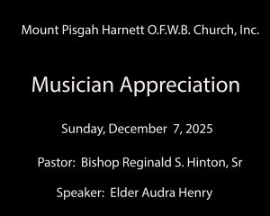 Photo Recap of Musician Appreciation Sunday Post author:Kimberly Massey Post published:December 10, 2025 Post category:Uncategorized Post comments:0 Comments You Might Also Like Part 5: Courageous Concern August 18, 2020 Women’s Day Photo Recap March 18, 2025 2026 Church Theme January 3, 2026 Leave a Reply Cancel replyCommentEnter your name or username to comment Enter your email address to comment Enter your website URL (optional) Save my name, email, and website in this browser for the next time I comment. Δ